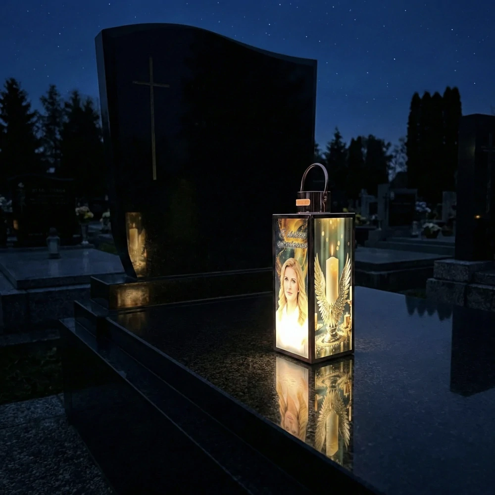 Nechajte spomienku na svojich drahých žiariť aj po zotmení. Tento inovatívny solárny svietnik ponúka nielen krásny vzhľad cez deň, ale v noci sa premení na nádherný, jemne osvetlený pamätník, kde celá grafika vystúpi z tmy.