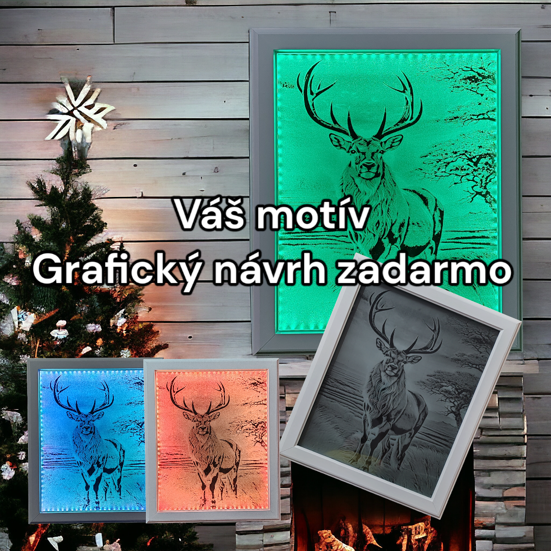Osvetlené obrazy vyrábame gravírovaním vašej fotografie, kde vám vieme doplniť rôzne pozadia a motívy. Pred každou výrobou spracujeme fotografiu a po dohode zo zákazníkom prispôsobíme aj motív pozadia. Každému zákazníkovi pripravujeme grafický návrh na schválenie alebo pripomienkovanie zmien. Gravirujeme všetky motívy obrazov ako napríklad fotografia, príroda, zvieratá, umelecké obrazy, detské motívy,, spoločenské obrazy atď. Všetko závisí na telefonickom alebo osobnom rozhovore. Samotný obraz sa vypáli do skla. Zadná strana je čierny semiš aby bola fotografia pekne viditeľná aj keď nebude osvetlená. Každý obraz je osvetlený farebným alebo bielym LED pásom na diaľkové ovládanie. Súčasťou balenia je aj adaptér na napájanie. Ukážky rámov vám pošleme do emailu. Každý rám je vyrábaný na zákazku z prírodného dreva. Podrobnosti vám radi poskytneme telefonicky alebo pri osobnom stretnutí na našej pobočke v Banskej Bystrici. Obrazy odosielame kuriérskou spoločnosťou v bezpečnostnom balení. Každý zákazník je na prepravu poistený. Obraz si môžete prevziať aj osobne priamo v našej výrobe v Ľubietovej pri Banskej Bystrici.